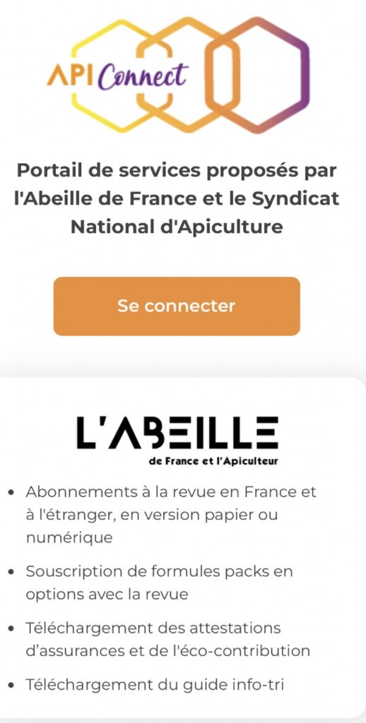 Vous avez accès à votre espace personnel pour télécharger vos attestations, voir votre abonnement et consulter la revue numérique « L’abeille de France »
